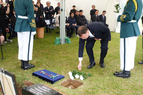 *안장식 참석자: 유가족 대표(손주 박병주)와 유가족 20여명, 놀란 바크하우스 주부산미국영사, 이남일 부산지방보훈청장, 권재환 외교부 의전기획관, 부산카튜사전우회 20여명 등 총 50여명