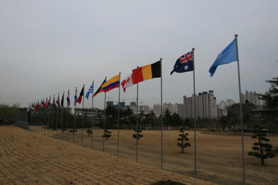 ↓ 유엔 깃발을 기준으로 한국전에 참가한 국가 순서대로 국기가 게양되어 있습니다 호주→벨기에 →카나다순으로 .....