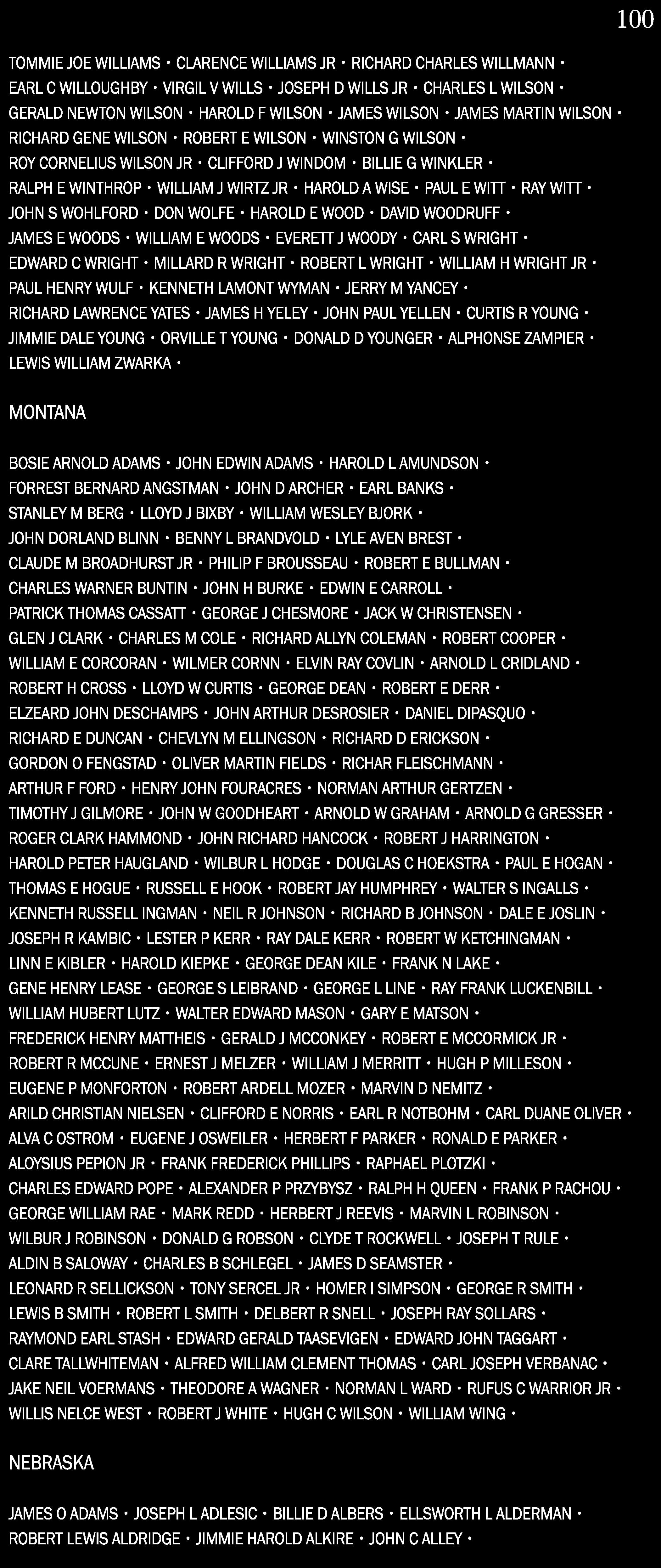 | Nation | Name | Wall no. |