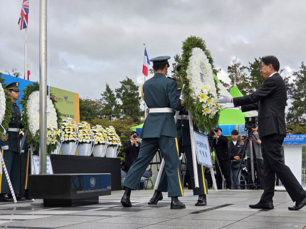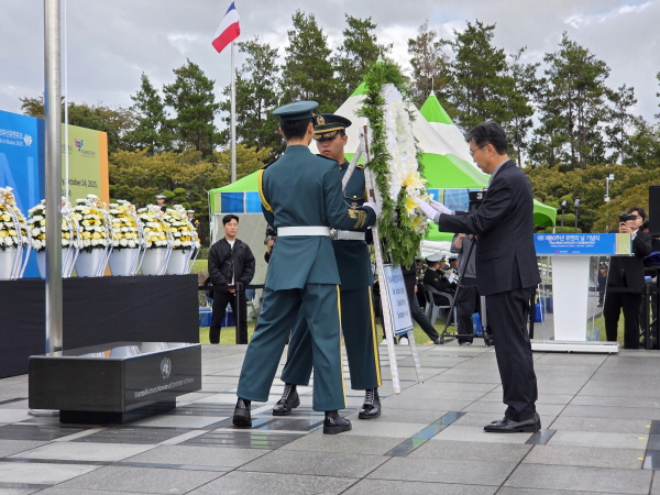 제80주년 유엔의 날 기념식 작성자admin 작성일2025-10-24 16:28:45 조회232 제80주년 유엔의 날을 맞이하여 부산시 주최, 부산글로벌도시재단이 주관한 `유엔의 날 기념행사`가 유엔기념공원에서 개최되었습니다.이날 기념행사는 부산시장, 유엔기념공원 국제관리위원회 의장을 비롯한 참전국 대사와 외교사절, 부산지역 주요인사 등 200여명이 참석한 가운데 거행되었습니다. 다음글제52차 재한유엔기념공원 국제관리위원회 정기총회