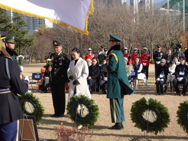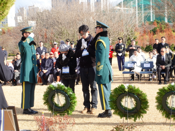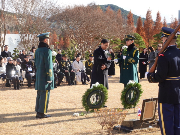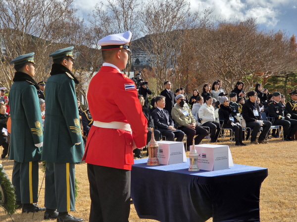 태국 참전용사 안장식 작성자admin 작성일2025-12-12 17:41:13 조회108 유엔기념공원 내 참전용사묘역에서 태국 유엔군으로 한국전에 참전했던 故 마놋 품마니껀 참전용사와 故 나롱 얨니욤 참전용사 두분의 안장식이 거행되었습니다.이로써 유엔기념공원에는 14개국 2, 336명의 유엔군 참전용사분들이 영면해 있습니다. 다음글제2기념관 임시 운영중단