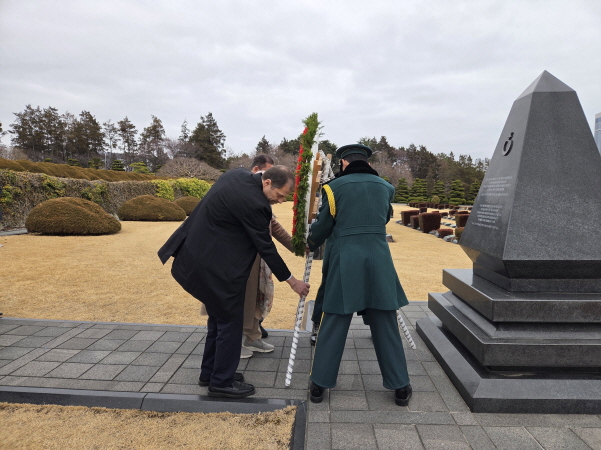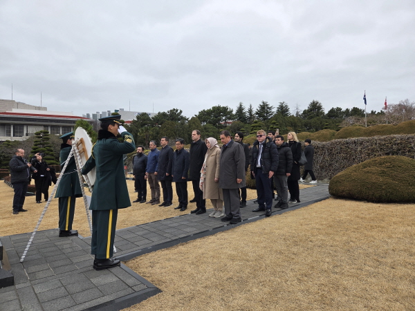 튀르키예 에너지천연자원부 차관 참배 작성자admin 작성일2026-02-26 17:47:08 조회604 튀르키예 오즐렘 젠긴 국회의원, 자페르 데미르잔 에너지천연자원부 차관, 무랏 타메르 주한튀르키예대사 일행이 유엔기념공원을 방문하여 헌화와 참배를 하였습니다. 이전글 호주 커틴대학교 교직원 참배 다음글주한벨기에대사 참배